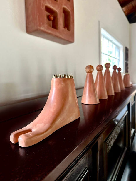 A palavra “Conexchão” não é apenas o título, mas é a essência da experiência. Entre o cone, que simboliza direção, e o chão, que nos sustenta, as formas de suas obras emergem como símbolos de união e complementaridade. Essas estruturas dialogam com a ideia de pertencimento, de encontrar um lugar no mundo, enquanto o pé aterrado evoca o equilíbrio entre o ancorar-se e o movimento.